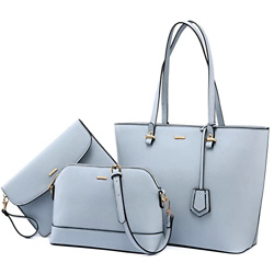 女款肩包+托特包+手拿包3件套,设计简约而且性价比超高!包包采用PU仿皮材质制成,触感光滑有质感;托特包内部容量较大,内部有一个主隔间,自带1个拉链口袋和2个卡槽;另外一个可自动拆卸的钱包,方便携带更加实用!托特包尺寸为39x33x15cm(W x H x D),肩带高度为31cm;肩包尺寸为33x24x12cm(W x H x D);手拿钱包尺寸为32x22cm(W x H)
